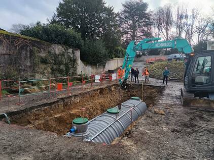 Dans le cadre des travaux de renaturation, une partie de la rue Moreau Vincent est fermée à la circulation, entraînant également la fermeture d’une sortie du parc de la Guérinière.