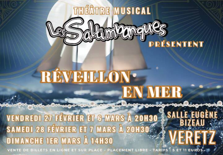 L’association Les Saltimbanques de Véretz vous invite à découvrir son nouveau spectacle de théâtre musical intitulé Réveillon en mer.