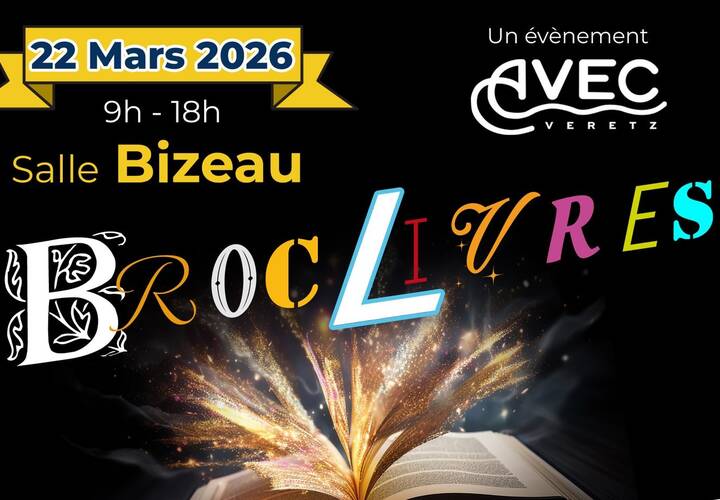 Organisé par l'association AVEC Véretz, le Broc'Livres revient pour une 2ème édition ! Livres, DVD, VHS, K7, CD, jeux de société et consoles… il y en aura pour tous les goûts et toutes les générations.